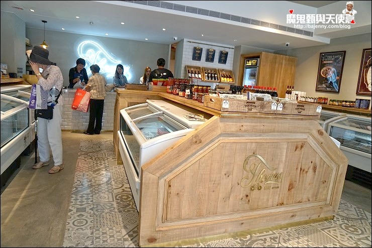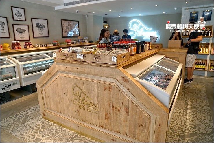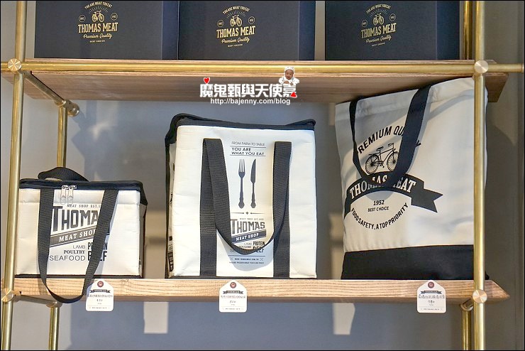 店內裝潢高雅有格調,溫潤的木頭陳架搭配金色的logo字樣,很簡單大方,Thomas即是創辦人的英文名字,旁邊那台腳踏車聽說就是當時挨家挨戶傳遞新鮮食材的好幫手,原本老一輩經營者僅著重在B2B(business-to-business)的經營方式,第二代經營者想要創立自己的品牌,延伸擴展到B2C(Business to Consumer)層面,才有了這三家湯瑪仕肉舖門市的出現。