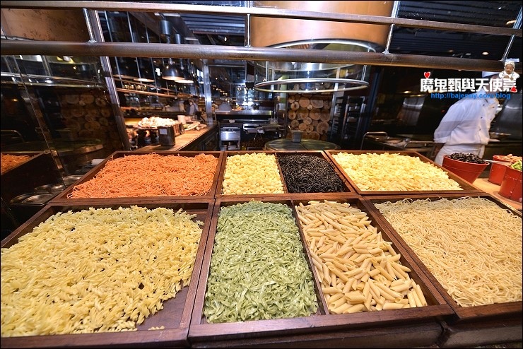 現點現作義大利麵,麵條種類也太多,口味吃起來感覺有點雜亂。