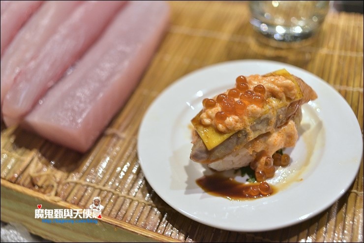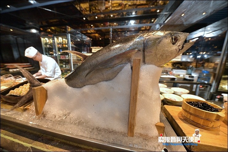 整條大魚霸氣坐檯的當令現流海鮮區,提供三種生魚丼飯現點現作,還有巨無霸握壽司可以點。