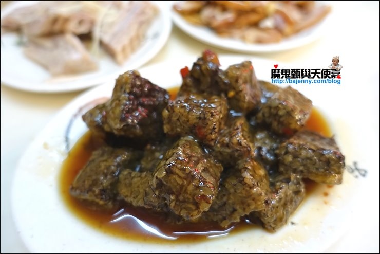 滷鵝血糕,味道比較重,我個人還是比較愛板橋阿瑋鵝肉的鵝血糕,無調味,要加醬料再自己沾,辣醬油提味很讚。