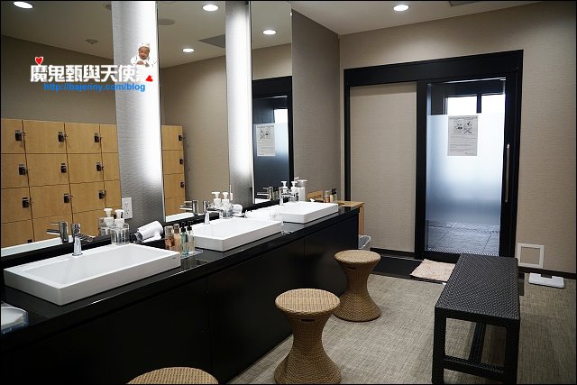 浴場的備品通常比房間多,這裡有Pola的卸妝洗臉化妝水及乳液,泡湯前在這邊把臉洗乾淨,連保養都在這裡做好再回房睡覺。