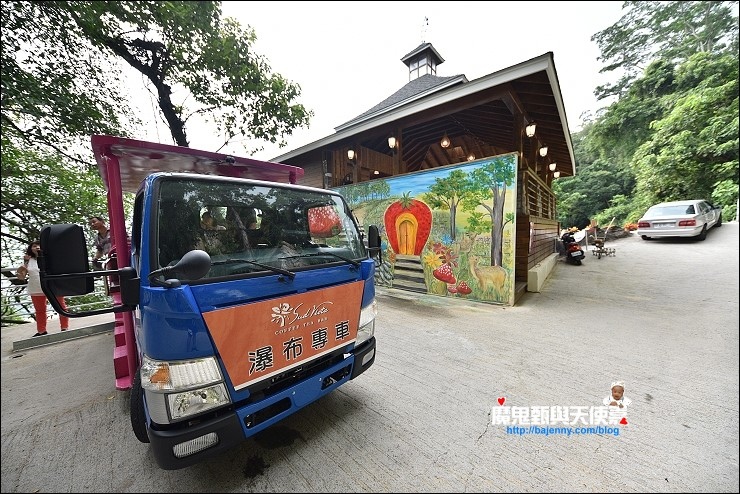 官網說瀑布咖啡屋的牆面彩繪是邀請南庄當地知名藝術創作家-倪君慧小姐創作