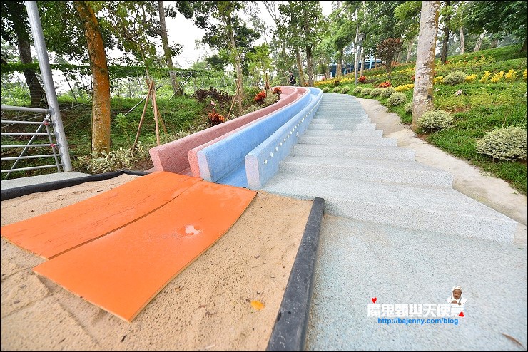 八月底完工開放後爆紅(雨天不開放),但不明原因又變成假日才開放的75公尺超長森林溜滑梯,第一眼會讓人想到青青草原的北台灣最長溜滑梯,這個長度完全不輸。