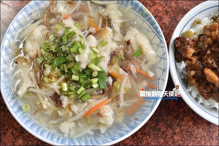 再去南庄公有市場的英姐小吃店來個回鄉麵,回鄉麵就是勾勾麵肉羹麵,英姐小吃店的魯肉飯口味不錯,客家湯圓也好吃,就是夏天吃完會爆汗。