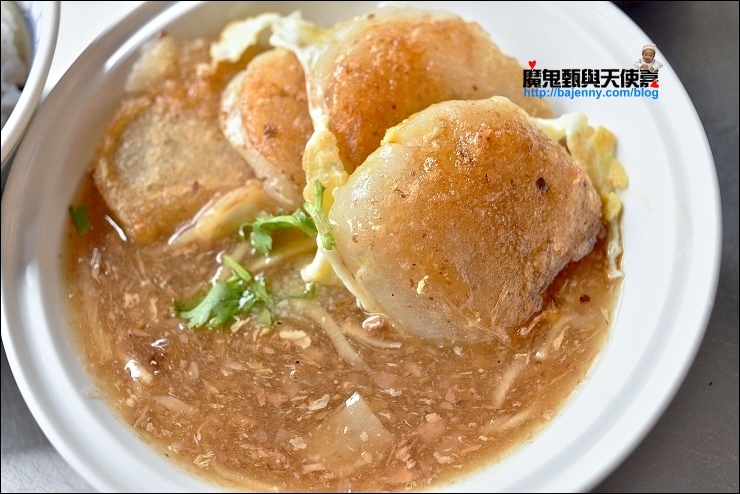 我家妹妹很機,盡挑金黃焦酥的外皮先吃,留了不少綿密白嫩的粿給我orz...不管單吃還是連羹一起,各有滋味隨人喜好。