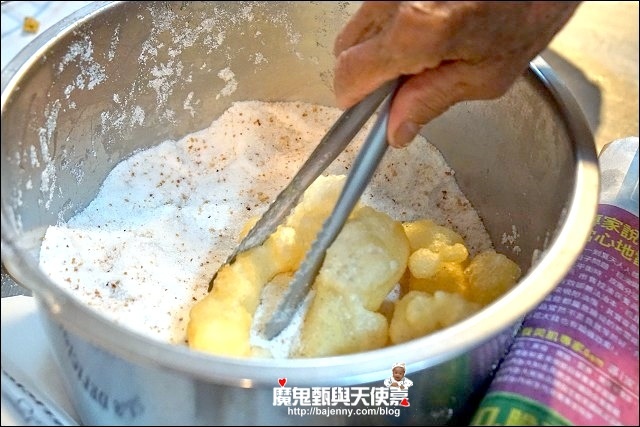 芋頭餅跟蕃薯椪也推,只是還是最愛有點麻花狀,起鍋後滾滿白糖花生粉上身的古早味零嘴白糖糕。