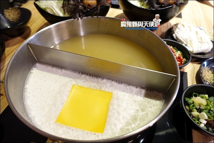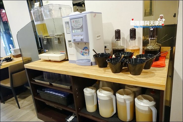 飲料是蜂蜜水跟檸檬水,比起甜膩的紅茶或冬瓜茶來說相對清爽,醬料也是自取,底下的是各種湯頭,有需要再請服務生來加湯。
