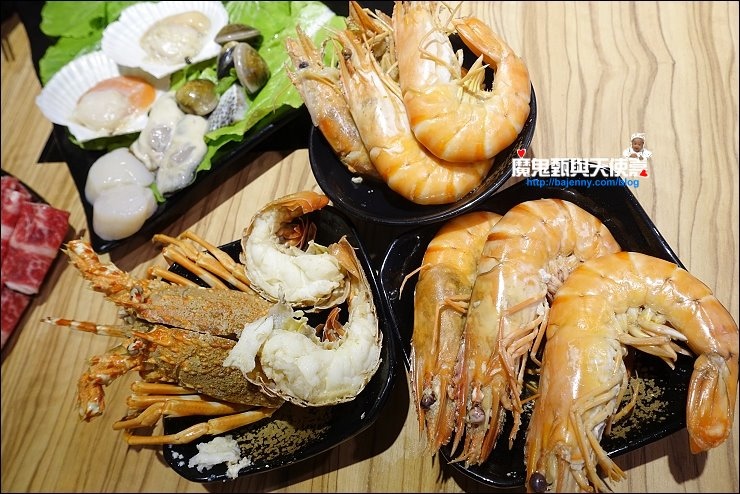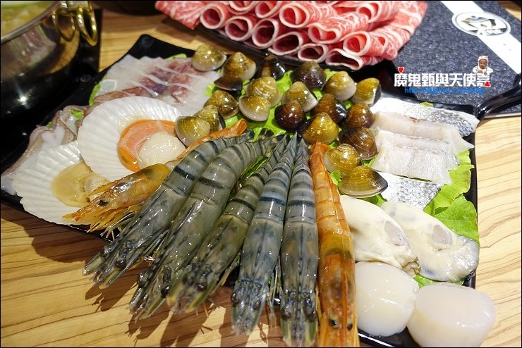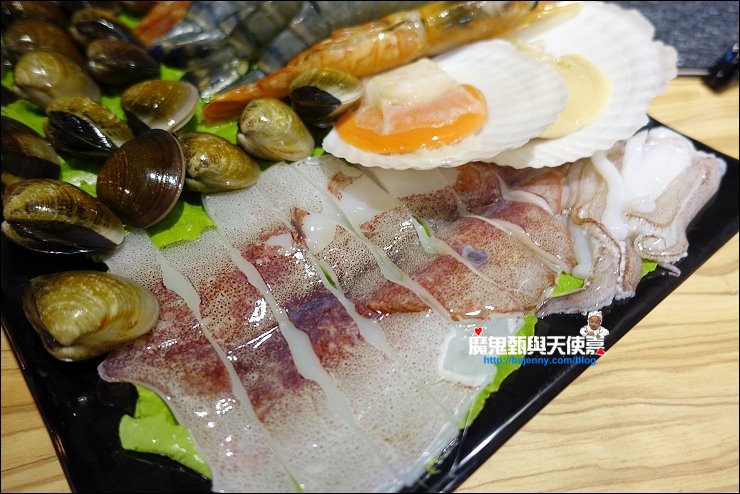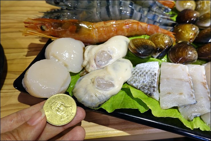 航空母鑑及巨無霸大蝦共七隻,還有中卷、干貝、魚片、大生蠔及扇貝跟一堆蛤蜊(20顆),愛吃海鮮的人眼睛都亮了。