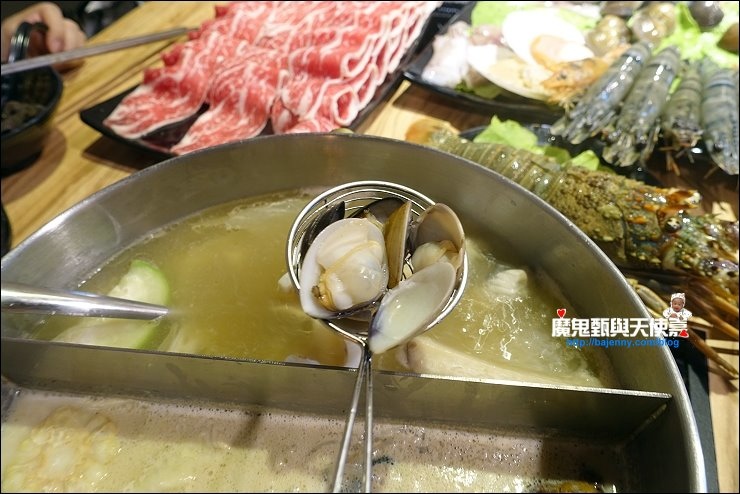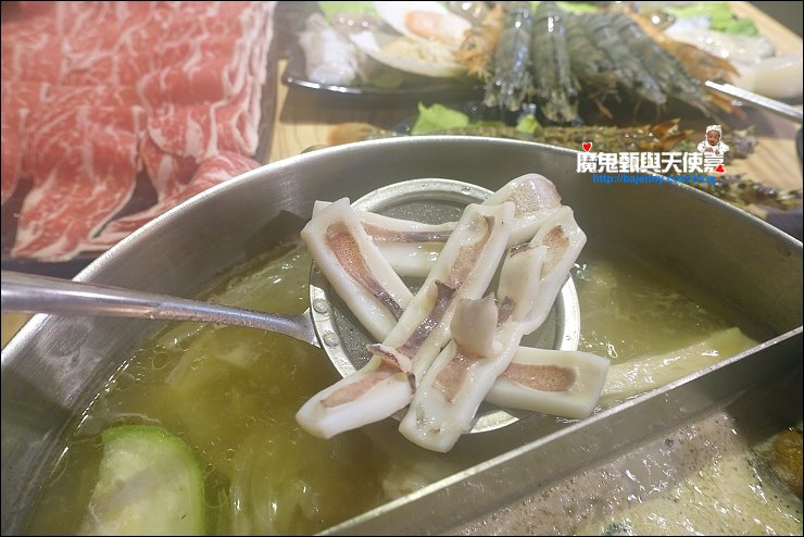 中卷一整隻,下鍋燙一下不用煮太久就可以吃了,相當Q彈,也吃的到鮮甜度,食神甄大嫂點頭稱讚!蛤蜊也是又大顆又新鮮,完全不會有煮不開的問題。