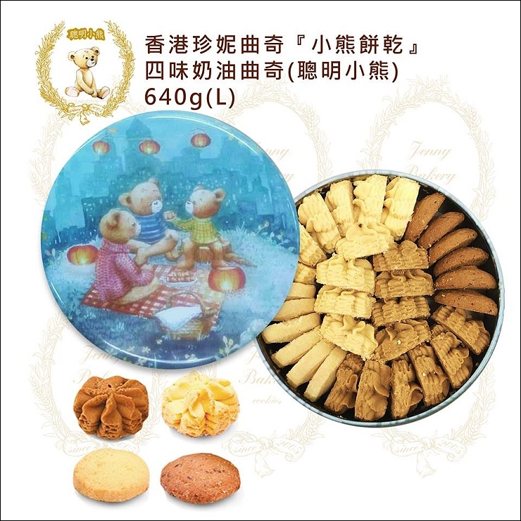 大家應該對香港必買的伴手禮Jenny's Bakery小熊餅乾不陌生,中文名叫珍妮曲奇,鐵盒都是泰迪熊圖樣係因創辦人Jenny喜歡收藏泰迪熊,故又別稱"聰明小熊餅乾",收到的鐵圓盒圖案好可愛喔,是說小熊餅乾外盒每個月都會改版,也會應季節推出限定款,鐵盒圖樣以實際收到為準。