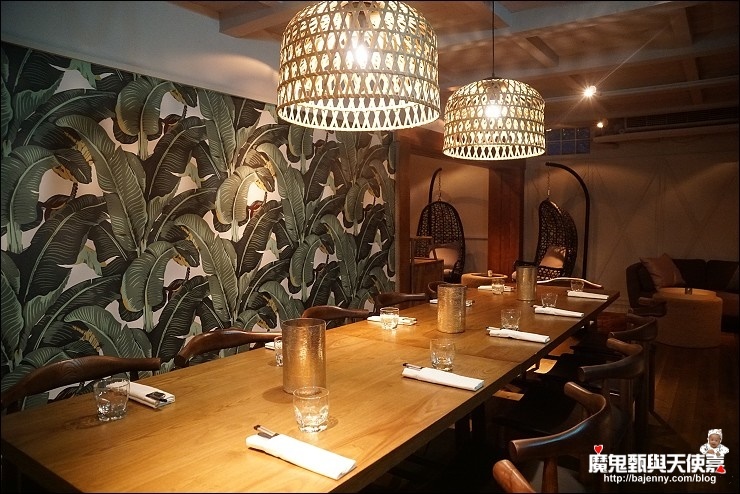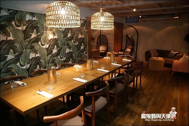 由於這裡主要做晚場時段(包括夜間宵夜),為餐館+酒吧的經營型態,最晚點餐到午夜12:00,12:00過後僅提供下酒小食,所以夜間仍想要吃好料的朋友來這裡準沒錯!而且這裡燈光昏暗氣氛佳,端上融合多國特色的當代料理,再加上美酒的催化,根本約會聖地無誤!很多住遠企的老外都會來這裡小酌(※飲酒過量有礙健康※);除了西班牙幾何花磚的吧檯位,還有英式沙發區的二人圓桌、四人方桌及和室桌等,每個區域的感覺都不一樣,展現濃厚的殖民地風格,聽說光是廚房與裝潢就花了不少錢…