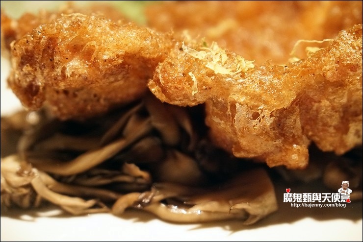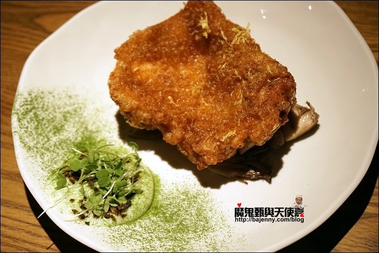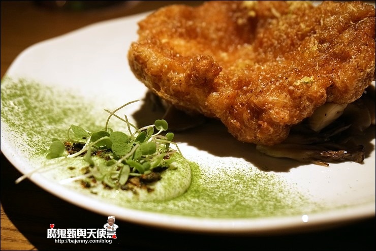 外酥內嫩單吃就很美好,沾旁邊的優格醬又是另一番滋味,炸雞下面藏了些舞菇,那個配炸物蠻適合的;這季的主食菜單除了羊,其他肉類都有(雞豬牛魚),聽說每季都會固定換菜單,決定以後每季都要揪姐妹來吃大餐!!