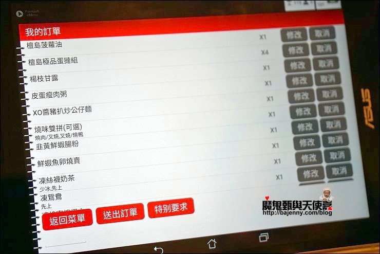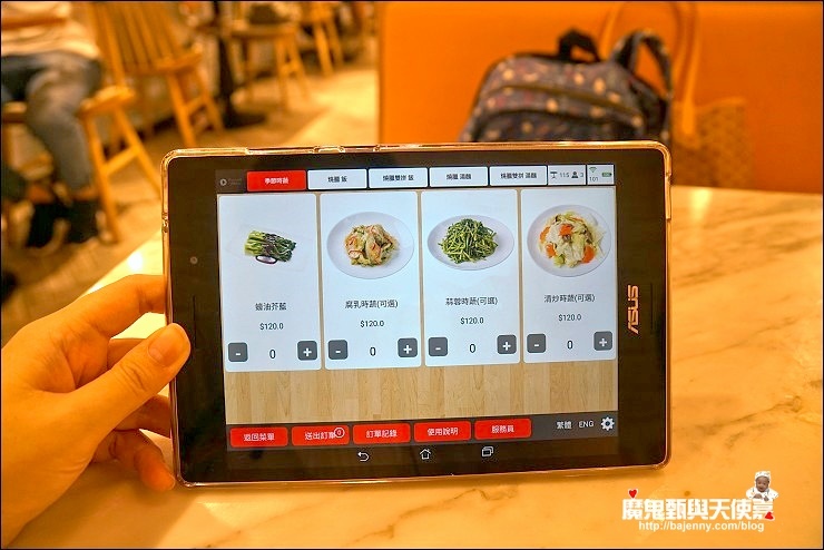 但明明用餐有限時還要自己花時間使用平板點菜(店員說明超快,根本來不及聽明白),我們著實花了不少時間研究,包括飲料的冰度、先上或後上,送出訂單後不一會兒餐點就會送上桌,最後也會提供點餐明細供服務人員作確認。
