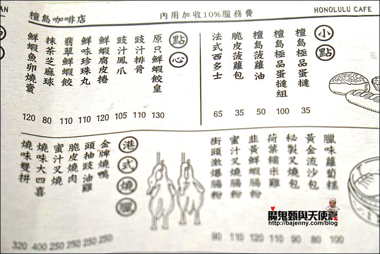 飲品有咖啡、奶茶、檸檬水、可樂、紅茶等,價位落在70~120元不等,在香港選凍飲總是比熱飲來的貴,但在台灣是一樣價,很好,有參考當地風俗民情定價:P