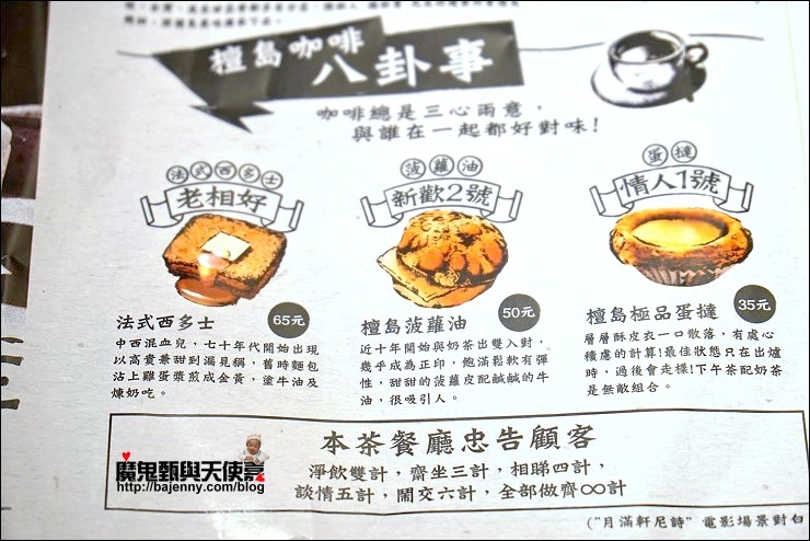 今天再上一天班就要迎接四天國慶連假啦!大家再撐一下下!我們家習慣連假留守台北城,今年依舊不例外,這篇介紹的檀島香港茶餐廳就分享給一樣與我在台北過節的朋友。這是好姐妹帶我來吃的,她說跟香港一樣的味道,衝著這點一定要來嘗鮮,由於只能現場候位無法預約,所以我們選在一開店十一點就到,果然順利入座,大嬸就是豪氣,雖然只有三個人硬是點了滿滿一桌,每日限量的蛋撻波蘿油更是先點先贏!一口氣叫了12顆,吃不完可以打包帶走,波蘿油跟豬扒炒公仔麵是我的愛!當天只點一個很後悔,至於那一盤公仔麵幾乎被我掃光,蛋撻因為太飽只有回家嘗一口(但姐妹很推),其他餐點表現見人見智,不過衝著好吃的波蘿油跟公仔麵,看朋友打卡說他的熱炒類餐點較優(推炒牛肉河粉、避風塘軟殼蟹、炸南乳雞翼),有機會還會再來~~