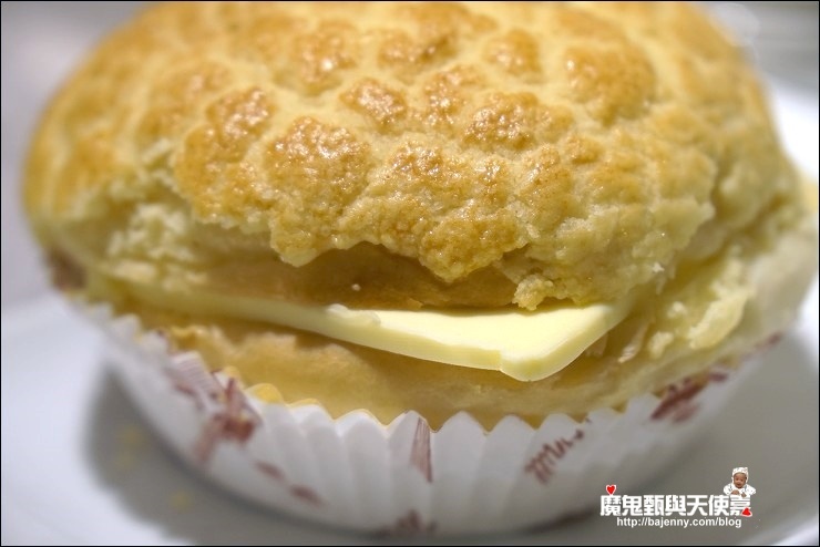 相對於蛋撻,我更愛脆皮波蘿油(50元),不喜歡中間夾的牛奶片的人,也可以單點脆皮波蘿包(35元),價格少15元,一樣有限量,每桌最多點六個(之前菠蘿油一個人限點一個),同行姐妹特愛最外層的波蘿脆皮,我則對夾層奶滑的鬆軟厚實麵包很有好感,哈哈!