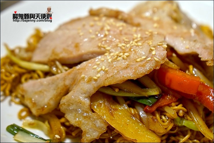 反倒是下面的公仔麵味道比較重,麵體口感優,配上肉片或青菜更好吃!一吃到好吃我就控制不了,這盤又剛好杵在我面前,一直夾一直夾就被我清光XD