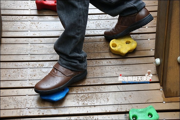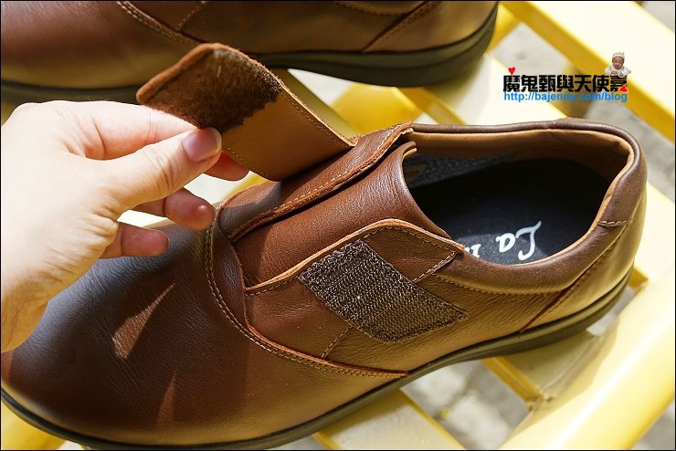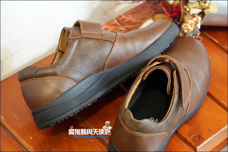阿弟爸喜歡不用綁鞋帶穿脫方便的魔鬼氈黏貼型鞋款,低調又耐看,這款防水鞋跟我的女鞋一樣的皮料,都是使用英國精選WR100功能等級的皮料,WR100功能等級的皮料具有防水性、防虹吸、乾的快、乾爽柔軟、及透氣的特性。