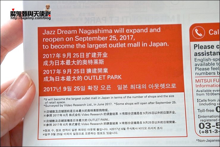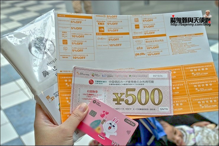 我們這次帶了一個嬰兒跟小男孩,肉包不是坐推車就是王妃掛身上,青青小熊的兒子很適合帶出國,全程自己走不說,還會幫忙哄肉包,三井OUTLET PARK爵士之夢長島的育嬰哺乳兒童設施還不少,到了之後記得先到案內所拿張樓層指南,有繁體中文版,只要有嬰兒的圖示就是設有尿布檯跟哺乳室(共有5處),要換尿布餵奶裝熱水都很方便,另外還設有嬰幼兒用輔助馬桶蓋及洗手台,也有規劃讓小朋友玩的空間(位於北區2F的ete旁),可以暫時留小孩跟爸爸在這,媽媽抓緊時間血拼去!北區1F綜合服務台提供嬰兒手推車,只要投100元硬幣即可租用,原地歸還會再退幣。