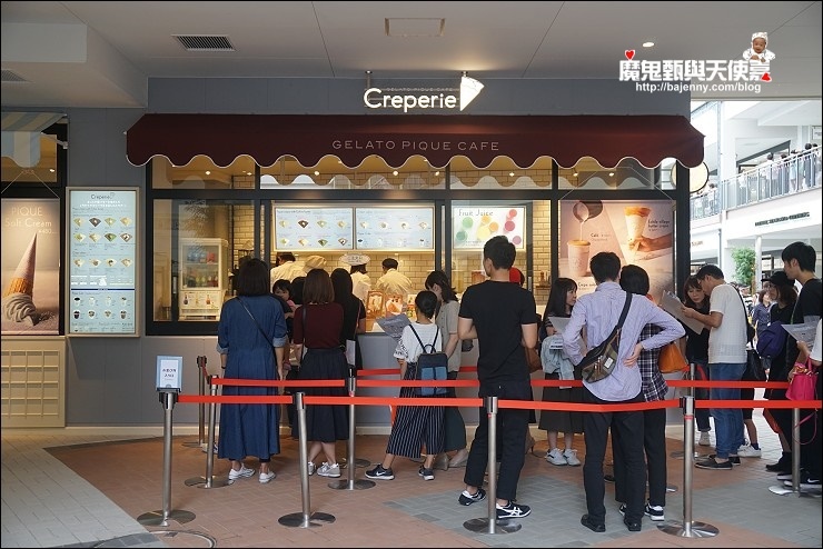 深怕開幕第一天被人潮擠爆,我們利用前一天VIP限定日前來探路,沒想到三井OUTLET的VIP也不少啊~~當天最新的第五期區域必須持有VIP邀請卡的人才能進入,但排隊人潮依舊湧現,只是隔天果然更誇張XD。一進來就看到Eggs'n Things大排長龍,好在我吃過大阪環球影城外的Eggs'n Things,所以沒有遺憾的經過:P,這家來自美國的COMPARTES巧克力品牌,據說是好萊塢名媛認證的高級巧克力老店,另外台灣也有的gelato pique cafe creperie法式可麗餅專賣店,他的可麗餅係以法國小麥麵粉與ÉCHIRÉ頂級奶油所製作,有鹹口味跟甜口味,我點了一隻混合奶油當下午茶,超好吃的!吃完這捲馬上就精力充沛,gogogo~~