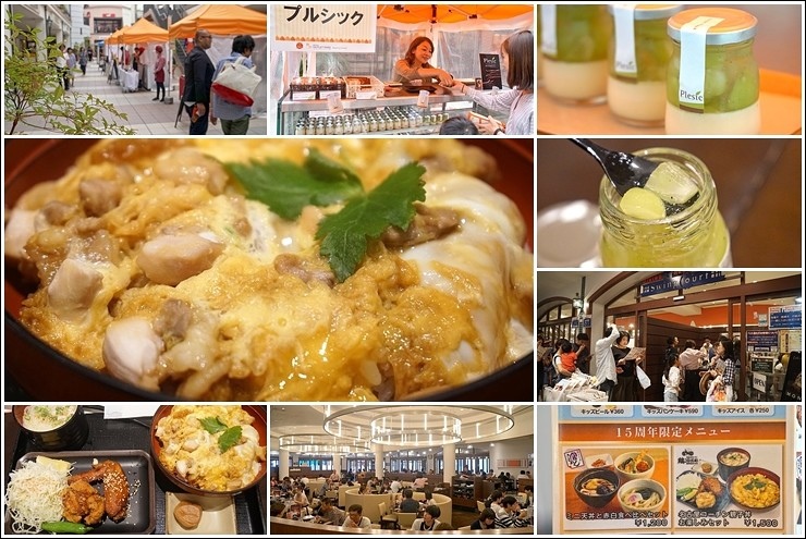 高達300間店鋪自然一時片刻是逛不完的,最好的中場休息時間就是享用午餐跟晚餐的時候啦,我們一餐在美食街裡吃,必須先排隊點餐結帳後再入座送餐,有很多套餐可以選,有人吃親子丼炸雞套餐,也有人點名古屋特有的鰻魚三吃,我們還外帶廣場市集販賣的秋季限定麝香葡萄布丁進去當飯後甜點(最高),有一餐大啖朝日屋的松阪肉套餐,沒辦法,人肉奶瓶的王妃需要大量進補蛋白質啊~~
