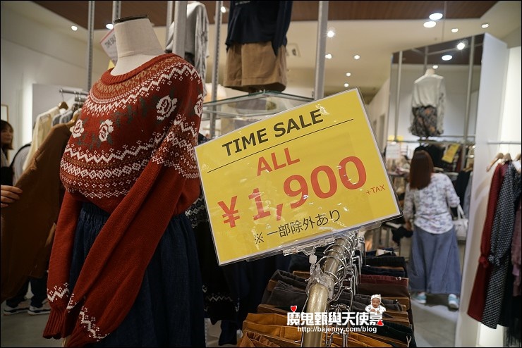 這裡要先提醒大家,除了鎖定愛牌,也要同時注意各家祭出的大利多『TIME SALE』,通常會有店員在門口嘶吼大喊,企圖召喚路過的客人進場,有時候是全店幾折或是全部通通一個價格,這時不管他是不是你常穿或喜愛的品牌,建議先進去繞一圈再說,此時不撿便宜更待何時,是不是,另外只要門口標示打到三折以上的我也會進去瞧瞧,折數高相對划算,挖到寶就賺到XD