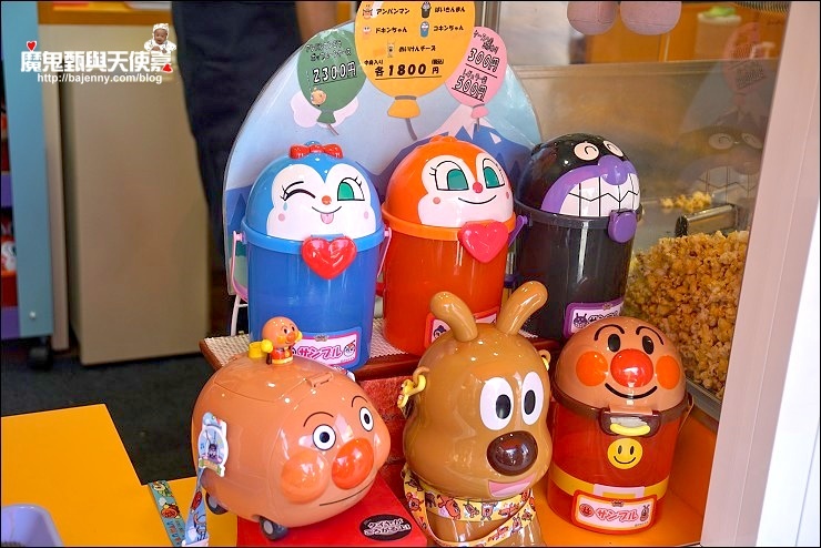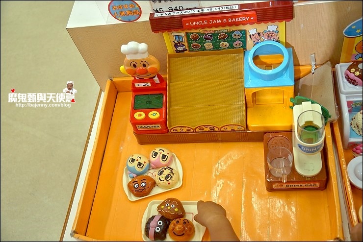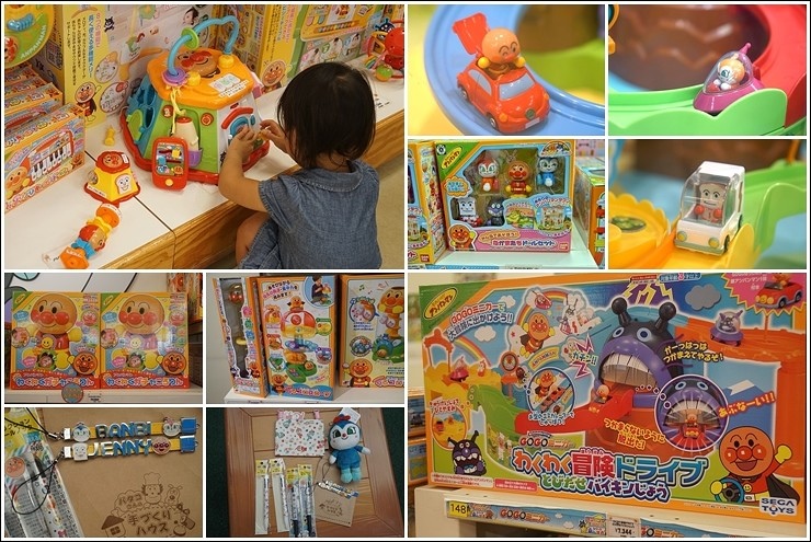 我真的要慶幸兩個小孩都大了!不然真的買不完啊~~雨鞋、襪子、圍裙說有多可愛就有多可愛,王妃一看到扭蛋機整個人就發瘋,還怕搶不到先結帳寄放在櫃台,要不是我制止她,可能連夾娃娃機也要給我扛回台灣XD,好在我之前就收集好多麵包超人杯盤跟環保購物袋,所以這次通通PASS,只小買了筆、小錢包跟娃娃。聽說青青小熊的兒子挑了這台麵包超人收銀機!當時看到小朋友在玩迷你麵包玩具,也好想要啊~~