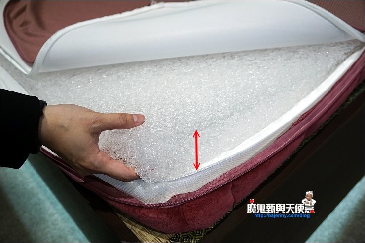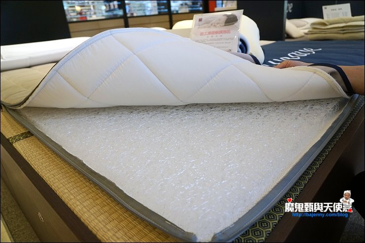 這款愛維福薄墊是標準款,床墊是4.5公分,不要看這床墊好像很薄,床墊使用可回收再利用的airfiber環保材質3D立體編織,整片看似錯綜複雜的交織卻是取得專利,不但不會有彈簧床翻身吱吱叫的聲音,愛維福薄床墊彈力好又有支撐力,翻身容易,睡覺輕鬆睡醒精神好。專業的店員建議以我的身形,這款標準款薄墊就很夠了。