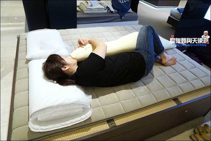 另外愛維福也有日本枕頭第一品牌的LOFTY枕工房,這裡有三款枕頭及一款抱枕,每款枕有三種高度可選,讓我愛不釋手的是這條比阿弟還長的蛋殼膜抱枕,萃取出蛋殼膜中的蛋白質,質感像絲緞般滑嫩,可以降低身體單點受壓,均勻分散體壓,很適合容易腰酸背痛的孕婦。我家甄大嫂一個人就要三顆抱枕,腰背一顆靠枕,二腳中間也要夾一顆枕頭,小腿腳下再墊一顆,這顆蛋殼膜抱枕一顆抵三顆。