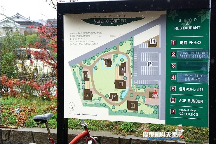 離開福知山城,步行到對面的Yurano-garden,這邊是由七間有特色的店家集合而成的商場,有咖啡廳、燒肉店、服飾店等店家,這區中間還有一大塊草地及椅子,很適合帶小孩來這裡放風。