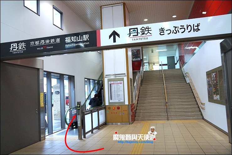 JR福知山站出站後搭手扶梯直接上二樓到轉乘京都丹後鐵道。
