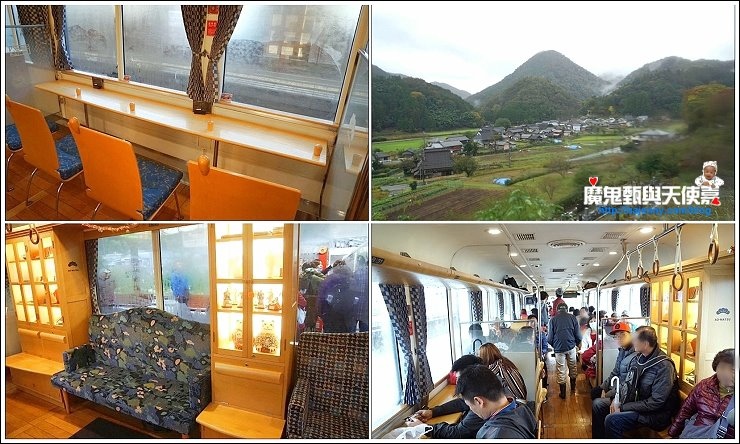 青松號列車是出自知名的鐵道設計師「水戶岡銳治」之手與日本九州有名的七星列車同設計師。青松號以日本海的白砂青松為主要設計原素,列車座位有吧台式、沙發、雙人座、四人座等高質感座席,我最喜歡面窗的吧檯座。這次剛好遇到團客,列車滿座,若是想舒適一點的話,建議可以加價買赤松號,一定會有位子坐,比較不會那麼多人,還有附迎賓飲料一杯!