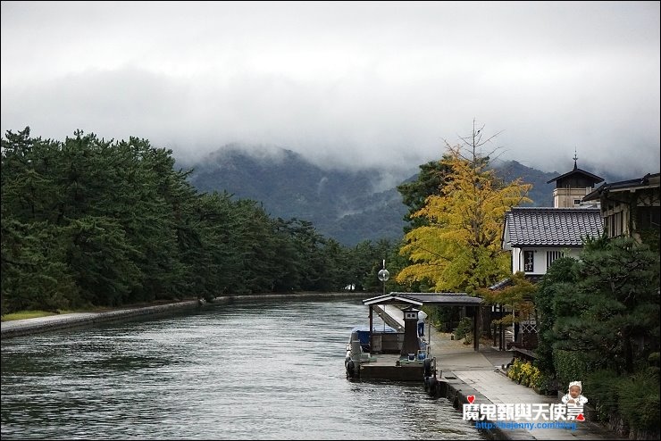 來到天橋立車站,同行友人肉圓說跟幾年前來差異很大,現在規劃的很美,車站出來直接往右走就能到智恩寺跟迴轉橋,行經的這間湯屋,晚上打燈好像神隱少女裡湯婆婆的湯屋哦,要不是趕著坐車,我還真想進去泡個暖呼呼再離開。