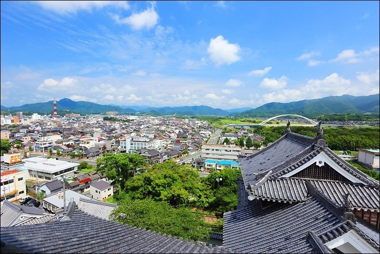 進入大天守閣,裏頭有相關歷史沿革資料,還可以試戴真田幸村和伊達正宗的武士頭盔拍照留念,武士頭盔意外的重又大,我戴起來有點好笑。從天守閣可以眺望城下町和由良川,古色古香的天守閣別有一番風味。