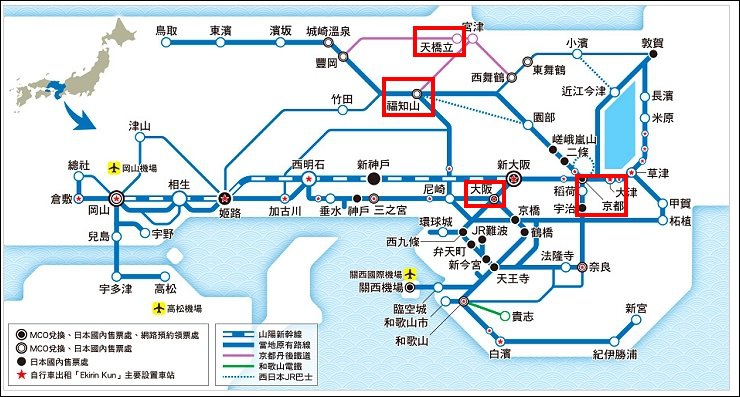 從大阪或京都到天橋立的交通方式,最方便的就是搭JR到福知山站再轉乘京都丹後鐵道列車到天橋立。從京都過去天橋立約二個小時車程,從大阪出發至少也要一個半小時的時間。