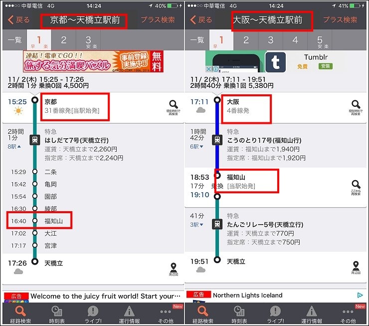 所以不管是從大阪或從京都到天橋立,搭JR到福知山站算是必經的轉乘點,一路坐到天橋立要花二個小時車程有久,建議在福知山站下車就先在週邊就可以安排半日遊,我們走訪了福知山城、購物商城再去泡湯吃個午飯,再從福知山站搭京都丹後鐵道青松號到天橋立約60分鐘車程,可以走訪天橋立、迴轉橋、智恩寺長智慧,回程一樣在福知山站轉車時,吃超級好吃又不傷荷包的和牛燒肉大餐,超充實又美好的一天!