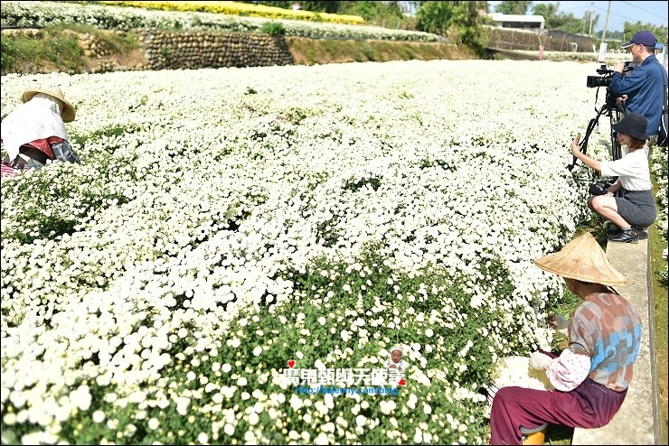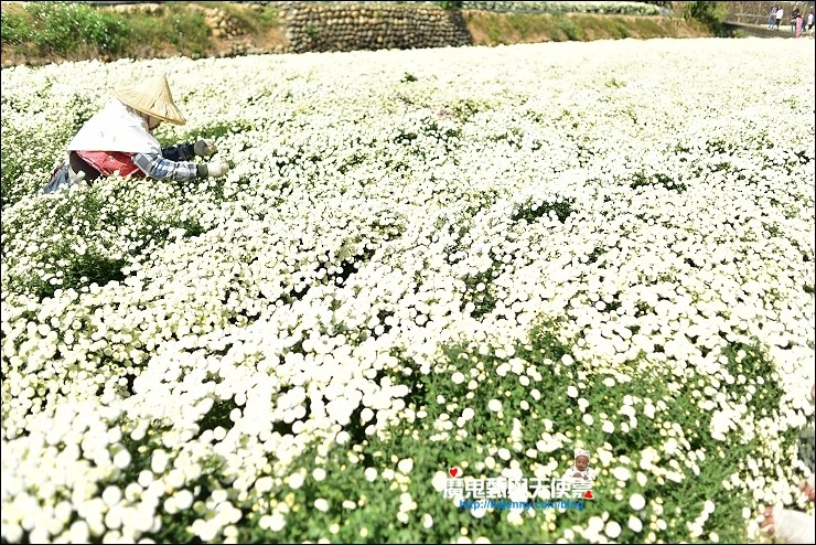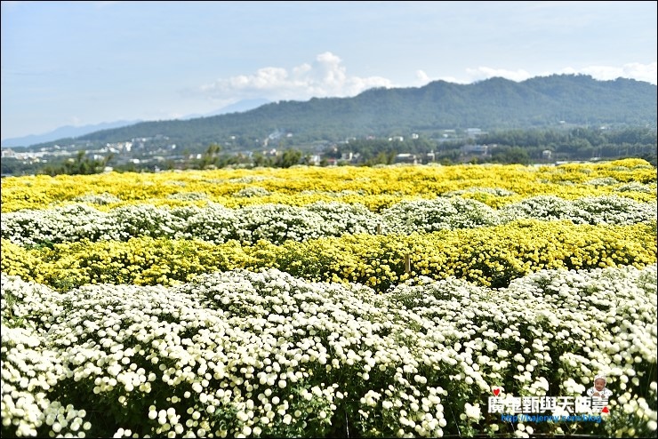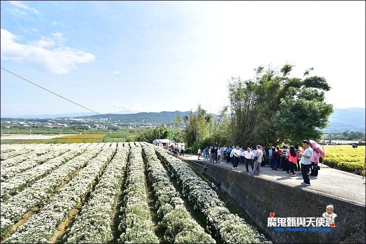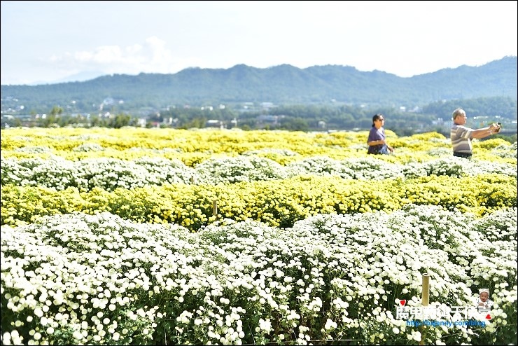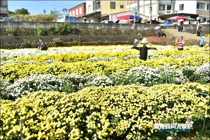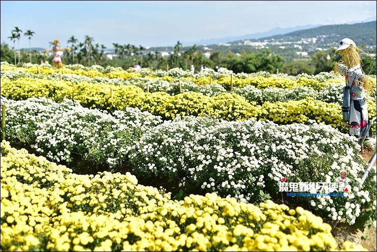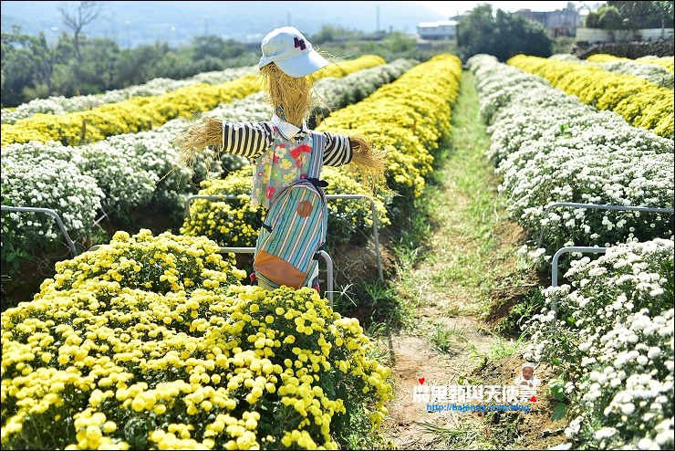 2017今年的花況真的好幾年前來都還要盛開,還有特意栽動雪白+黃金菊,形成黃白相間的杭菊花田,稻草人也可供賞花拍照取景。