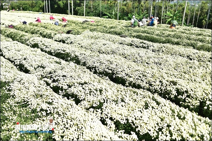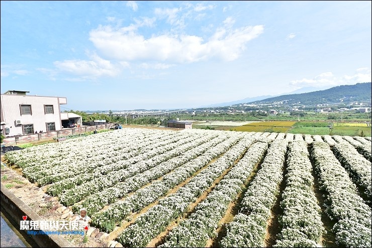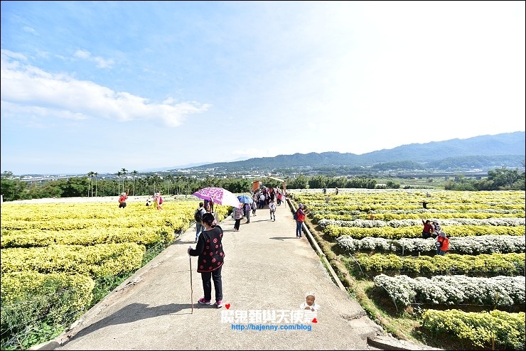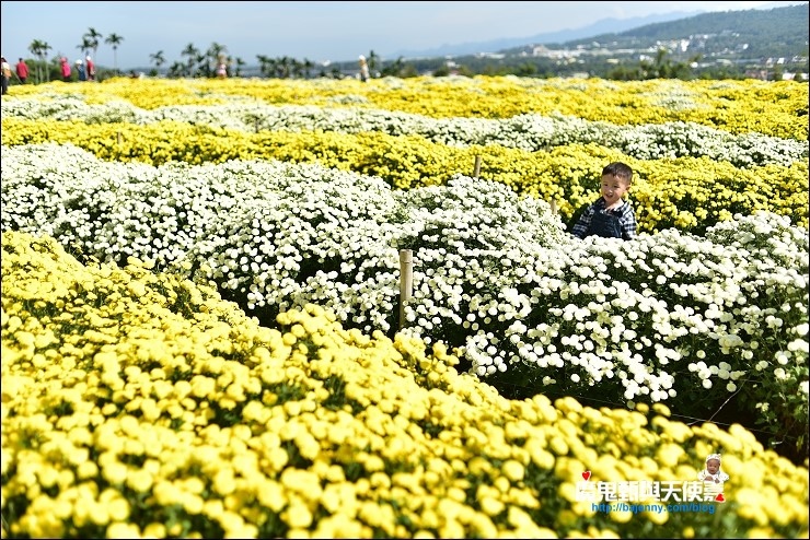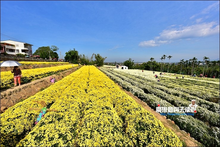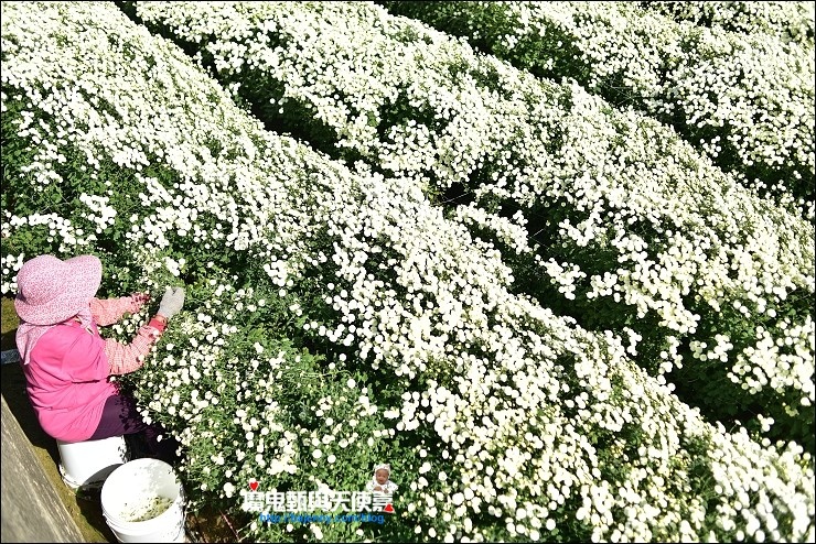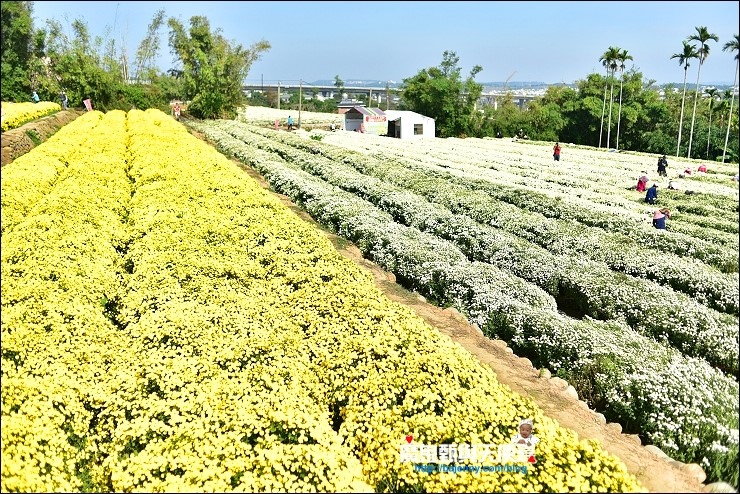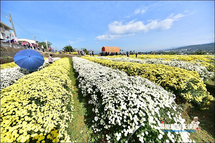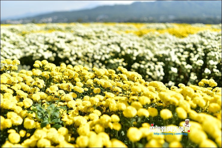 2017今年的花況真的好幾年前來都還要盛開,還有特意栽動雪白+黃金菊,形成黃白相間的杭菊花田,稻草人也可供賞花拍照取景。