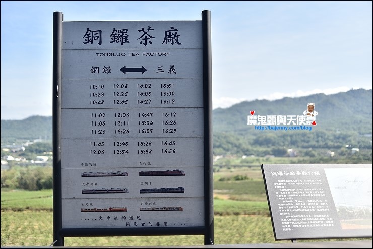 銅鑼老茶廠貼心附上火車時刻表,方便大家可以抓拍採茶加火車經過的美景。