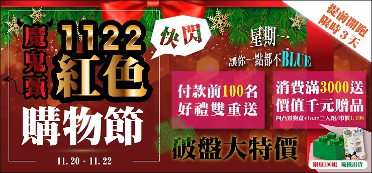 ☑開團時間:2017/11/20上午10點00分~11/22晚上11點55分(不到三天)