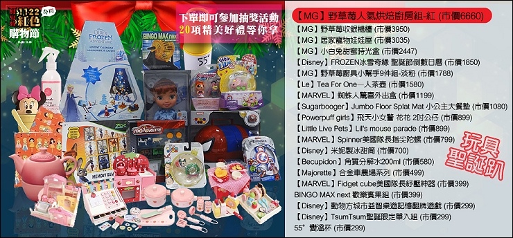 消費滿三千且付款前100名者享好禮雙重送,這次送很大!價值千元以上的贈品(四凸置物盒及TsumTsum角色包三入裝)通通送給你,下單不限金額並分享該則FB可抽20項精美禮品(單項金額最高達6,660元),FB按讚及分享就可抽TsumTsum鐘塔樂園一組。