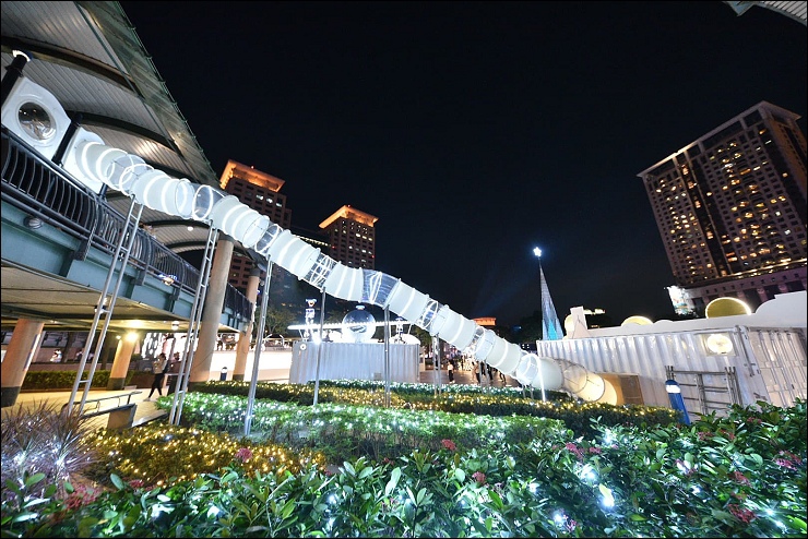 首度於市民廣場打造一座時光溜滑梯,小朋友從二樓迴廊,溜過閃閃發亮的溜滑梯,進入到夢幻的泡泡球池,即代表成功登陸桑塔星球!快來一起通過考驗,完成登錄吧!