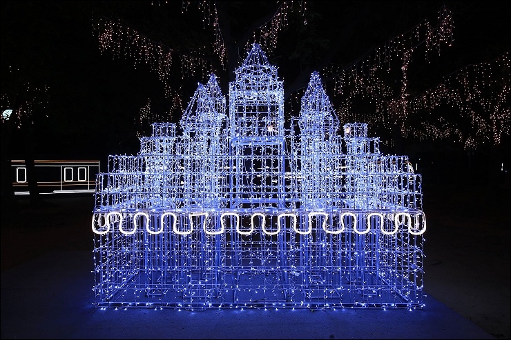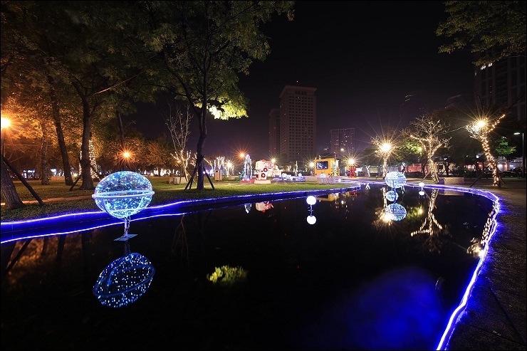 新北市政府內外和周邊道路都有大型藝往燈飾裝置,讓網美可以IG打卡和情侶好好放閃。