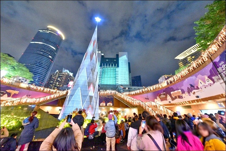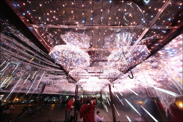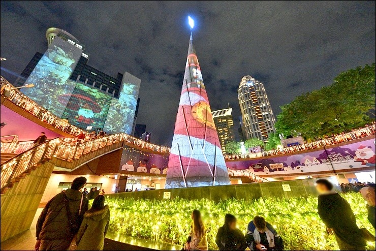 市民廣場區的賞燈重點就是耶誕主燈秀、車站廣場地下通道的繽紛海洋泡泡和假日人擠人的耶誕市集。