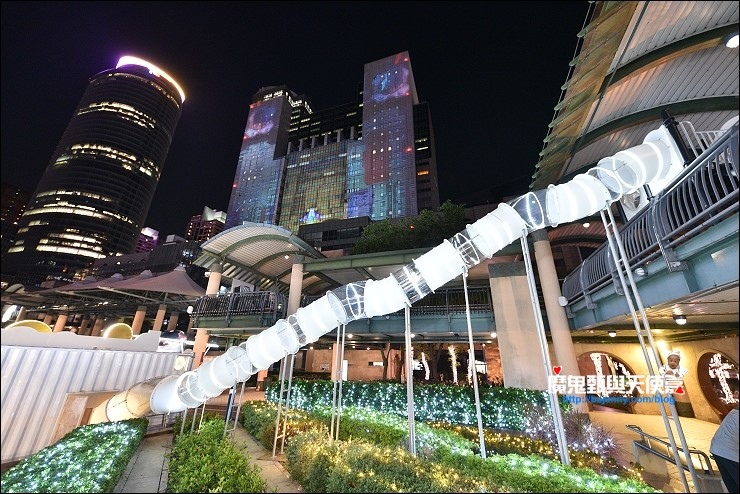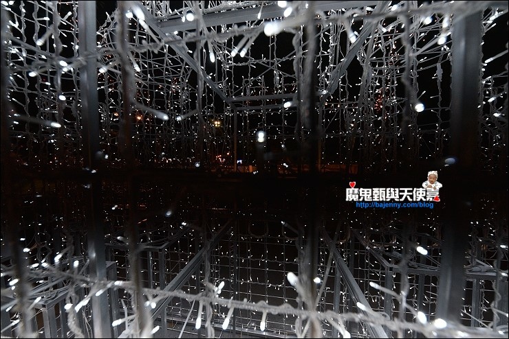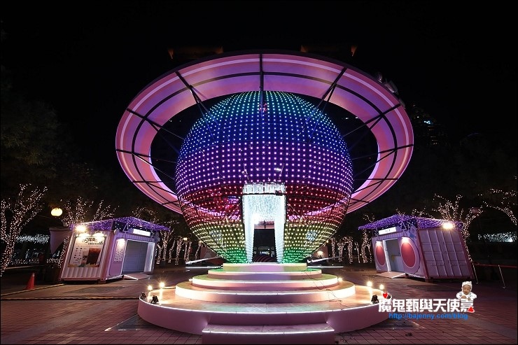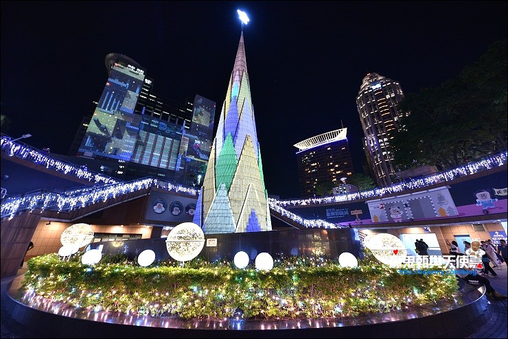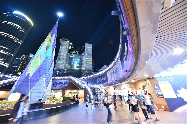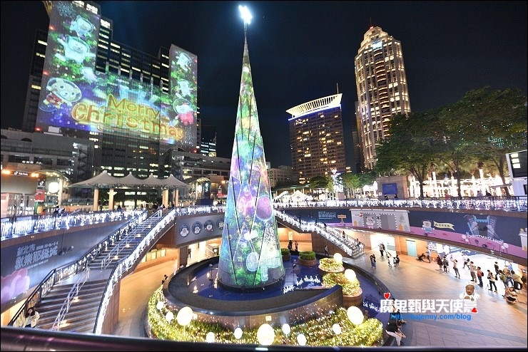 看完浪漫的LED燈藍海,走上階梯就是全球唯一的360度3D立體光雕投影耶誕樹!!連下雨天拍照也有fu~~