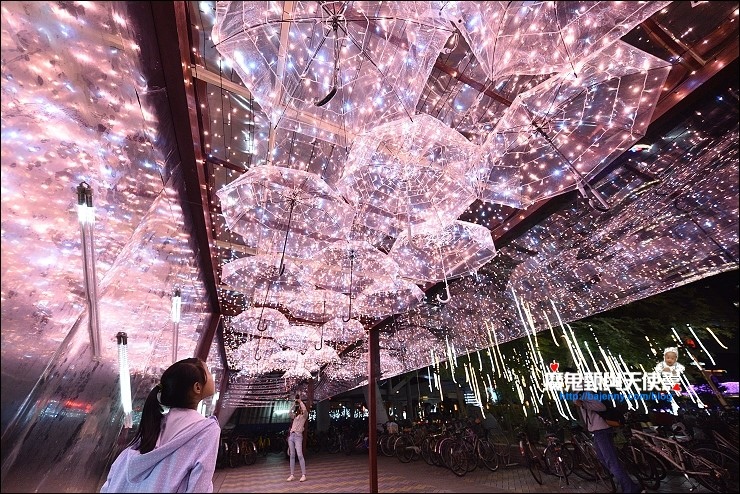 除了四大夢幻燈海隊隧道是網美必拍之外,台鐵東一門出口的花牆傘海樹林皇冠今年也很夯!搭高鐵或台鐵來板橋車站的朋友,記得先出東一門拍照打卡再開逛~~