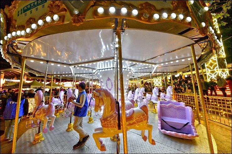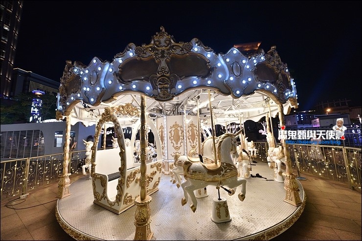 跟前幾年一樣,竹筍燈耶誕樹二旁有免費的夢幻旋轉木馬和雪白飛天椅,在欣賞3D光雕投影的空檔,看到人少的話,也可以帶小朋友去玩一下,他們一定會很開心。