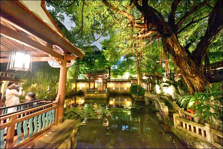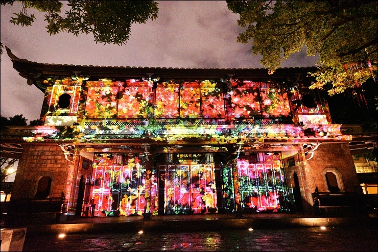 夜間燈光現代科技結合林家花園的文化建築風格,真的有穿越古今的fu,鳥大叔光是在入口沿途就拍個不停