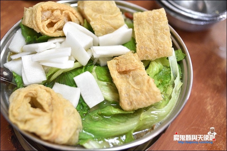大叔這個年紀要好好保養,除了吃羊肉補身顧體力,青菜也要多吃點,阿明羊肉爐的豆皮好吃喔!~~