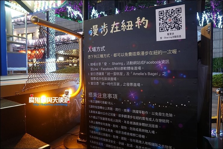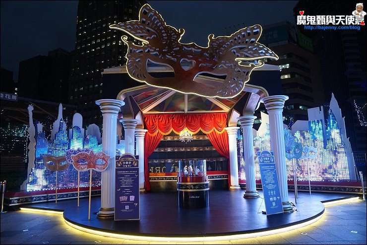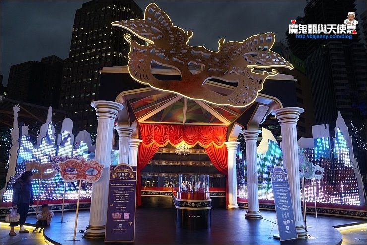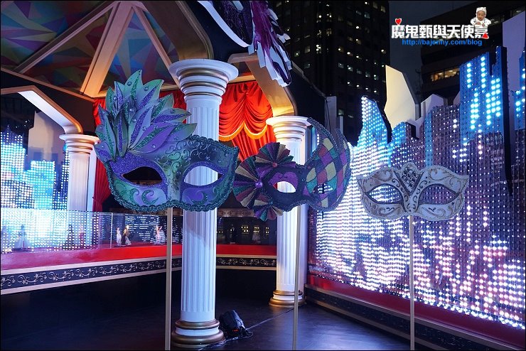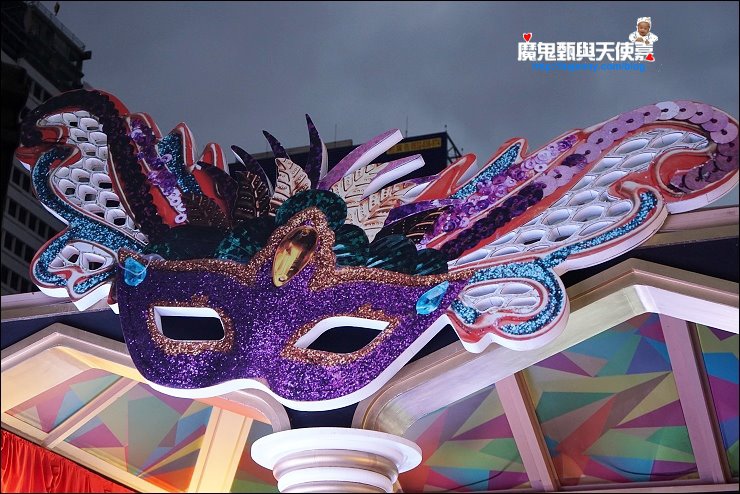 魔幻舞台背面也很有巧思,以紐約高樓為背景設計,正面二側是燈光與色彩豐富的面具搭配,夜幕低垂時分,絢爛的光影好耀眼,讓我們一起敢作夢Try it,有夢最美,築夢踏實!聲光表演期間是2017/11/17至2018/1/3,每天晚上四場每次兩分鐘(18:30、19:30、20:30、21:30)。